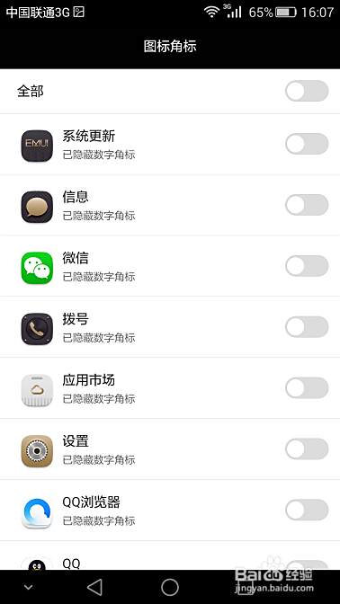 滑动全部按钮,使其关闭,或者自己有所选择地关闭图标角标;