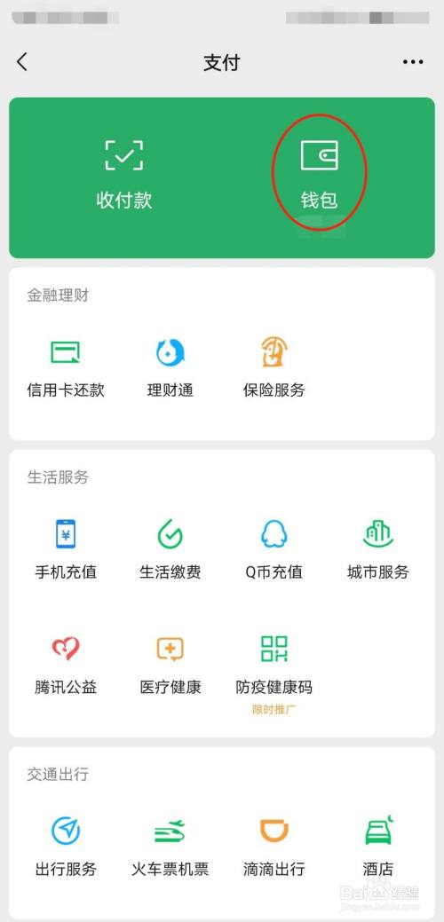 在微信钱包界面,选择“零件”,进入零钱界面。