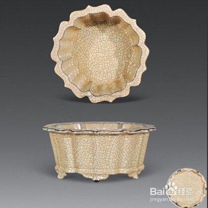 官窑是宋徽宗政和年间在京师汴梁建造的,窑址至今没有发现。官窑主要烧制青瓷,大观年间,釉色以月色、粉青、大绿三种颜色最为流行。官瓷胎体较厚,天青色釉略带粉红颜色,釉面开大纹片。这是因胎、釉受热后膨胀系数不同产生的效果。瓷器足部无釉,烧成后是铁黑色,口部釉薄,微显胎骨,即通常所说的"紫口铁足"。这是北宋官窑瓷器的典型特征。 北宋官窑瓷器传世很少,十分珍稀名贵。