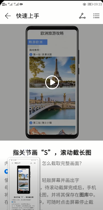 使用指关节在屏幕轻敲并画出字幕“S”,可以实现长截屏。