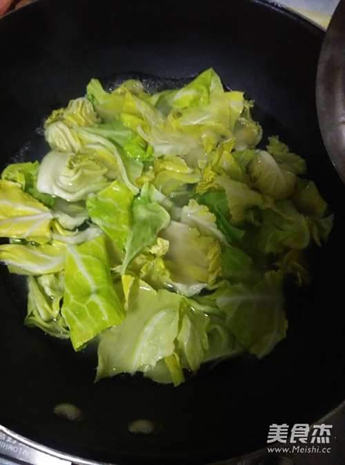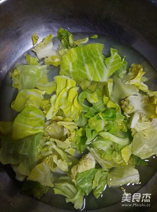 锅中另放清水烧开,放入莲白焯1分钟,捞出控水