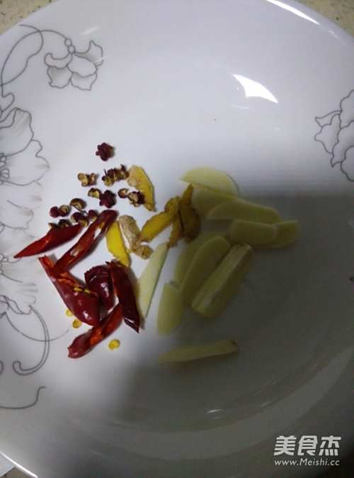 干辣椒剪丝,姜切丝,蒜切片