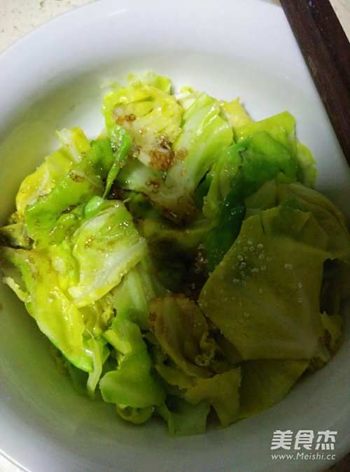 把6淋入放入莲白的大碗中,拌匀即可