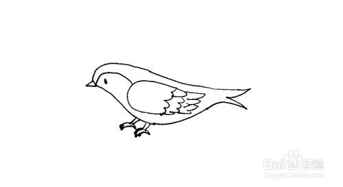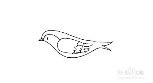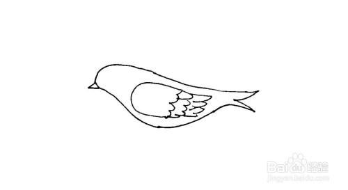 画出嘴巴,然后长弧线画出鸟的背部轮廓线。