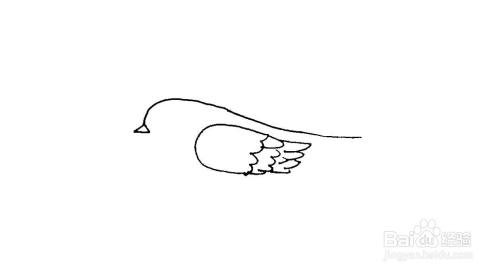 长弧线画鸟的腹部轮廓线,从头部画到尾部。