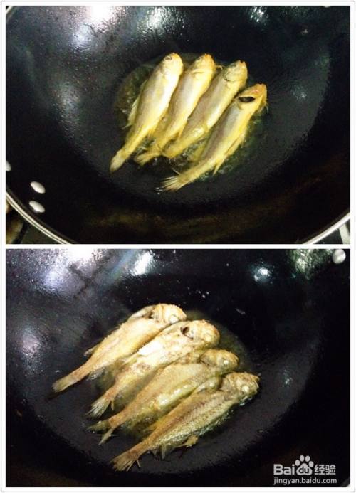 炒过咸菜的锅洗干净擦干水分,再倒入适量的油烧热,放入梅鱼煎至两面金黄