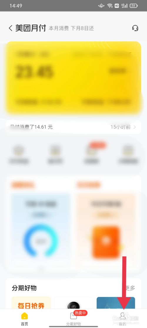 在美团月付中点击我的进入个人中心。