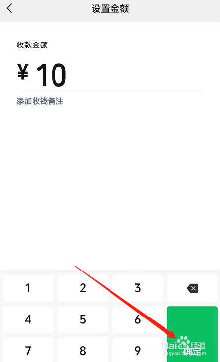 输入收款的金额,点击“确定”。