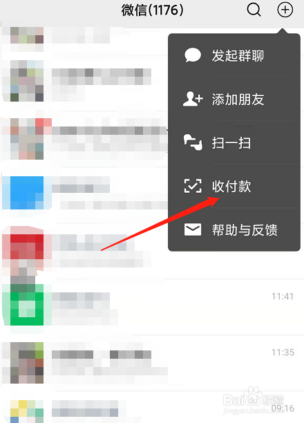 在出现的选项里点击“收付款”选项,如图。