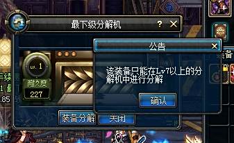 最下级分解机也不能分解红字装备。