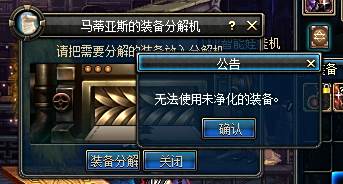 无法使用未净化的装备。