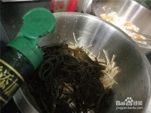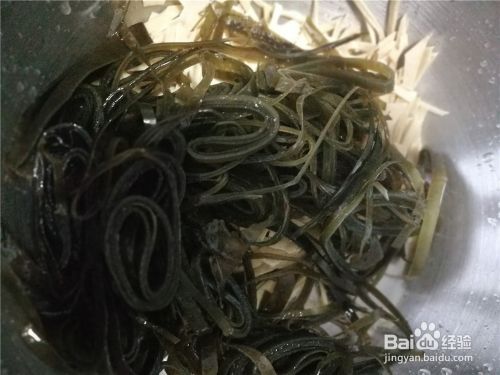 将干豆腐丝和海带丝倒入盆中