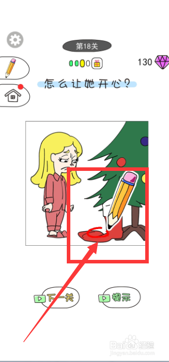 圣诞袜里装满了礼物,小女孩开心了,这关就可以通过了。