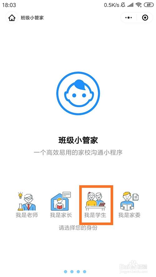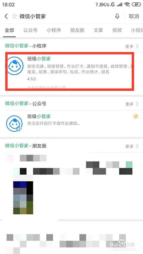点击〔+〕,搜索班级小管家,点击〔班级小管家小程序〕。
