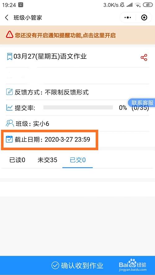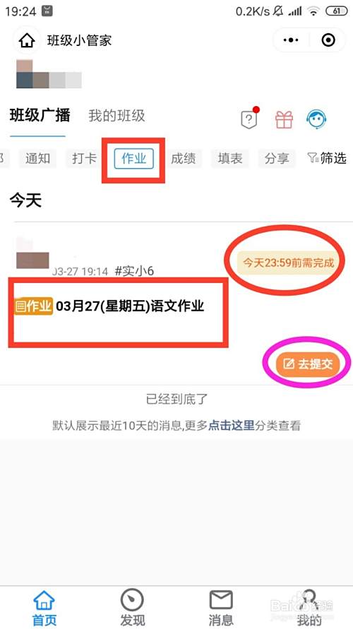 点击〔作业栏目〕,看完成最后到期的时间,点击〔去提交〕。