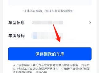 输入车型信息和车牌号,点击保存到我的车库进行查询即可。