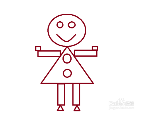 然后在腿的下方画上两个三角形,这是小人的鞋子。