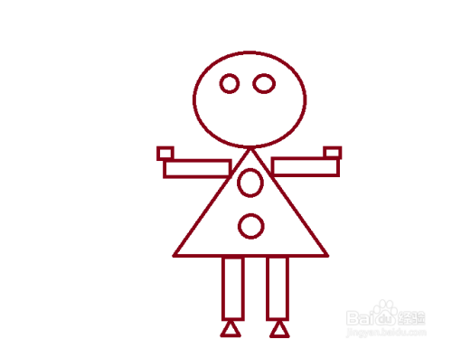 然后在三角形里面画上两个圆,这是小人衣服的纽扣。
