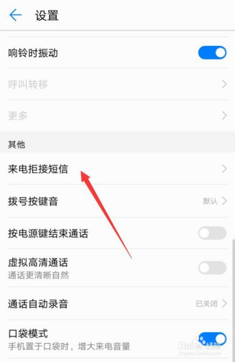 第4步,在通话设置中点击来电短信模板的功能。