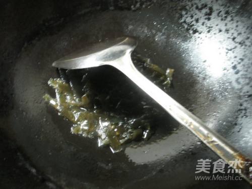烧锅加2汤勺油烧热,下入切好的海带翻炒翻炒。