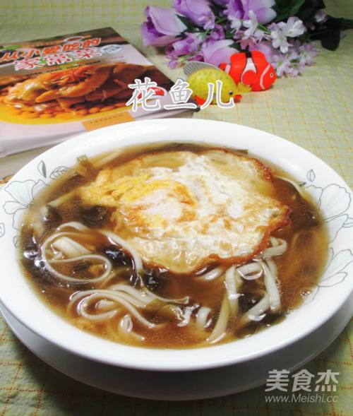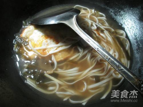 食材:面条、海带(已泡发清洗切丝)、鸡蛋(已煎)