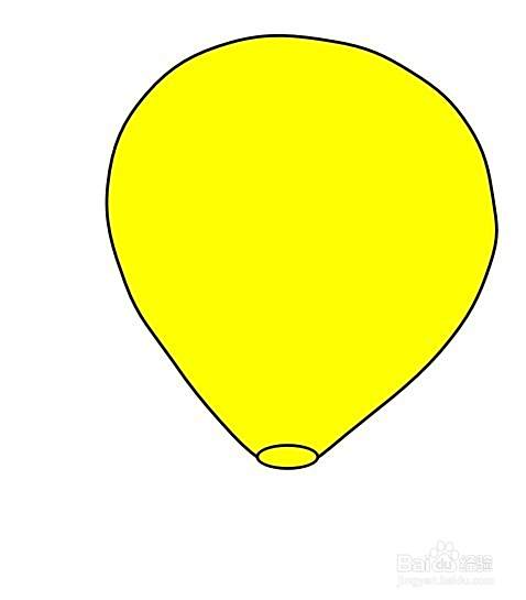 然后在画好的热气球的口的顶端,画出热气球。我们把整个热气球涂成自己喜欢的颜色。例如,黄色。