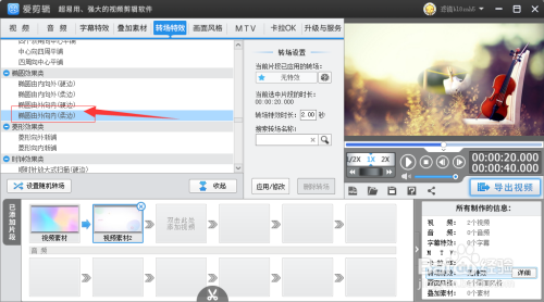 第二步:点击转场特效,然后选择需要添加转场特效的视频,如图所示。