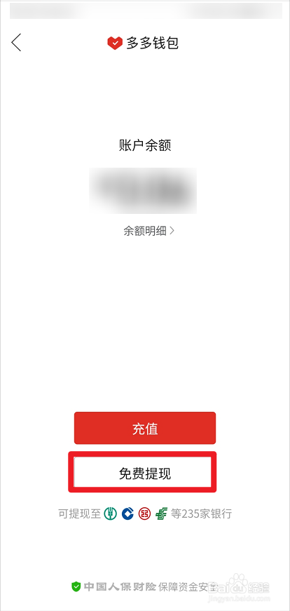 输入提现金额,然后选择“确定提现”,即可将多多钱包里的钱提现到银行卡。