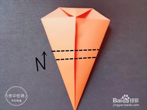 如图:沿着虚线向下折叠。
