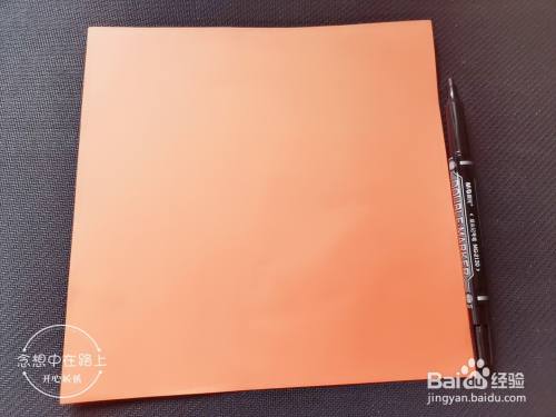首先准备好要用到的材料:一张正方形的彩色纸和一支笔。