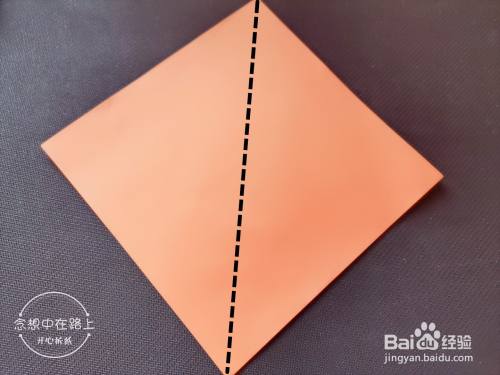 如图:沿着虚线折叠后再打开,形成折痕。