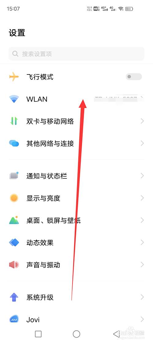然后,在设置中按照箭头方向向上滑动。