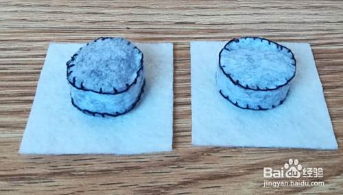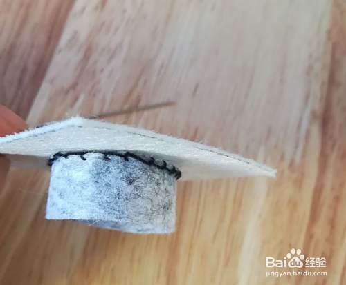 把机器人一个圆柱形耳朵的下面缝到一边。