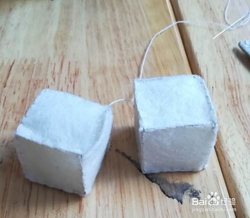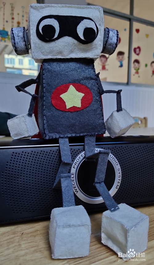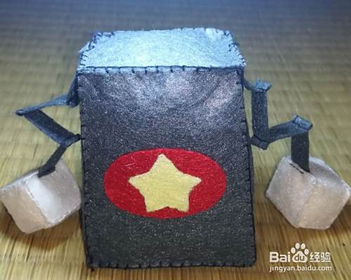 把布对折再对折,用针和线勾勒出它的折痕,使机器人具有机械感。
