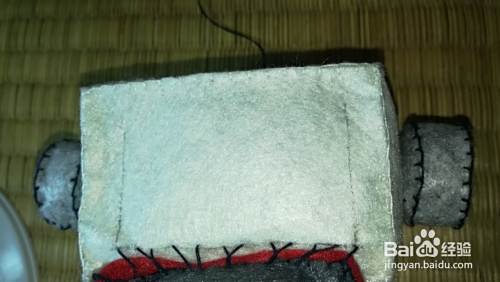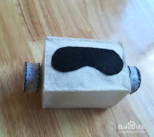 将耳朵连接到机器人头部的侧面,然后缝合另一只耳朵的底部(别忘了放棉花)。