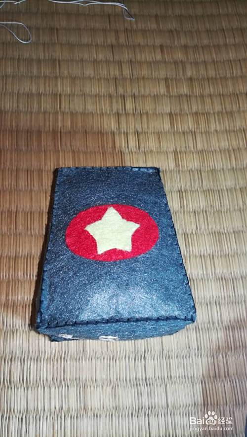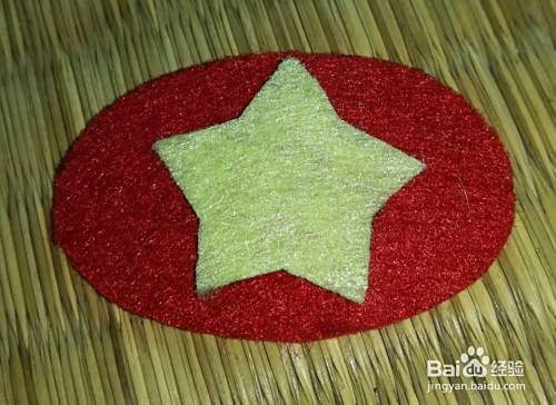 用纸折出一颗大小合适的五角星,剪下来缝在非织造布上。
