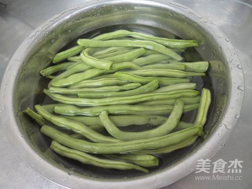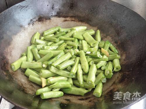 6再起油锅,葱姜入锅煸香后豆角入锅炒。