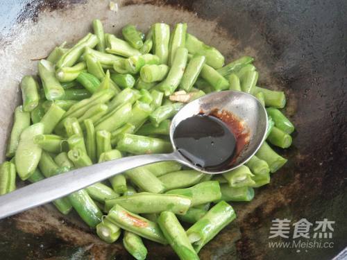 9焖至豆角熟,加盐、味精炒,炒均匀,大火收汤后即可关火,盛出享用。