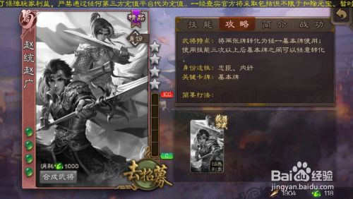 武将卡出来,可以在武将卡右方查看武将攻略。