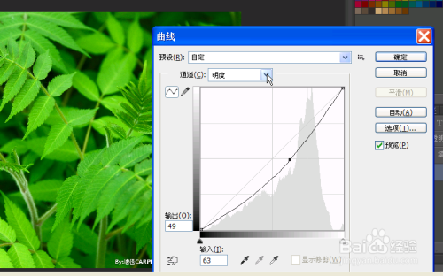 点击图像-调整-曲线,调整明度数据,明度输入为63,输出为49。