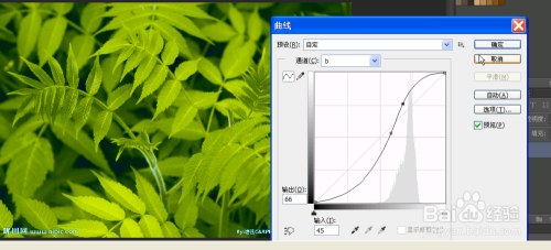 调整b通道数据,输入为:45,输出为:66,然后点击确定