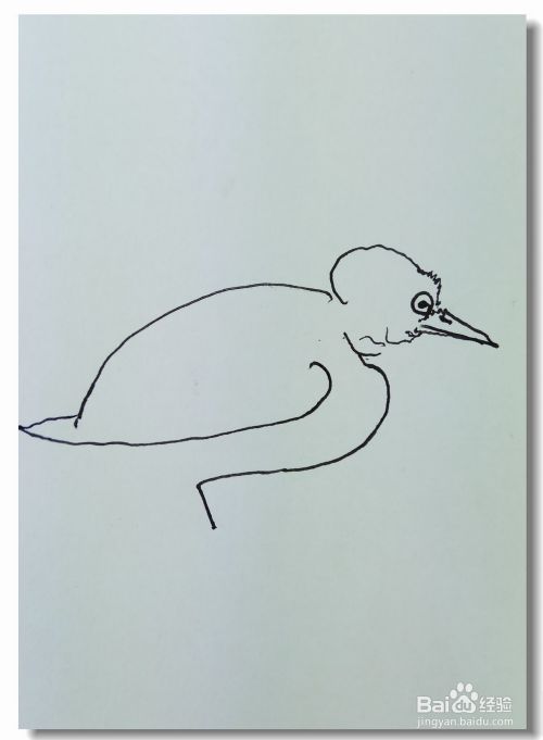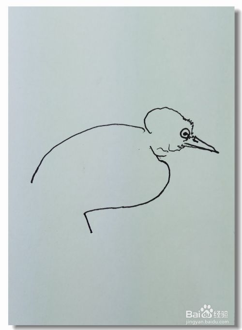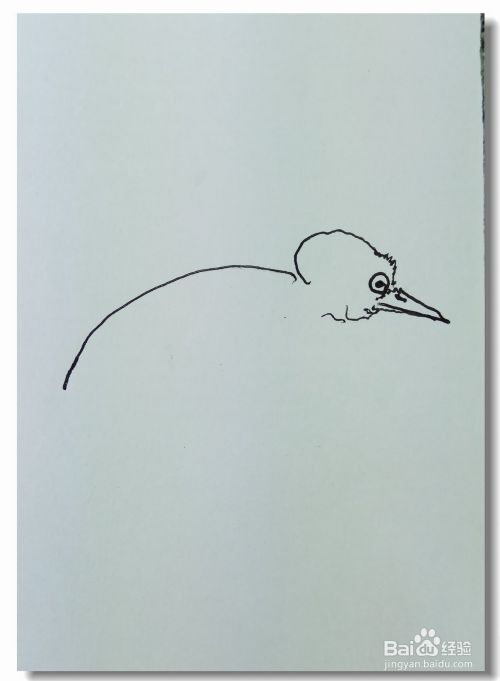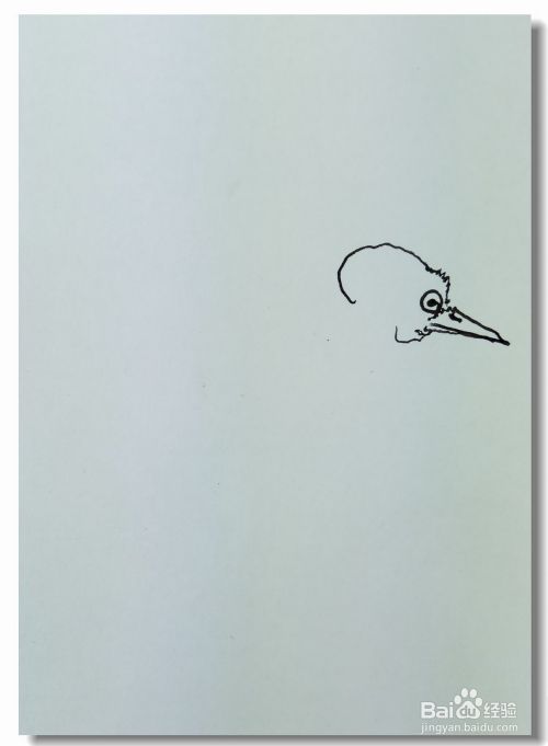 在白纸上画出鸟的头部轮廓,并画出它的眼睛和长长的嘴巴。