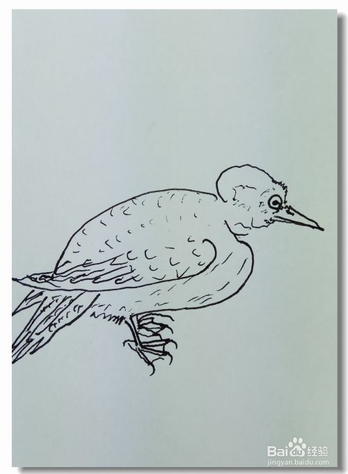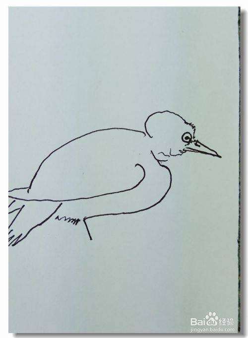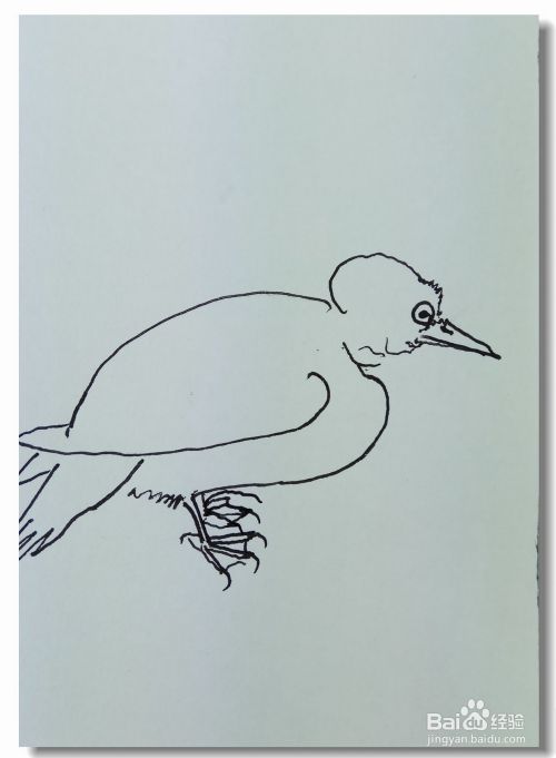 画出鸟的尾巴,并修饰一下细节,画出鸟的脚和脚爪子,这种鸟的脚爪子是很有特征的。