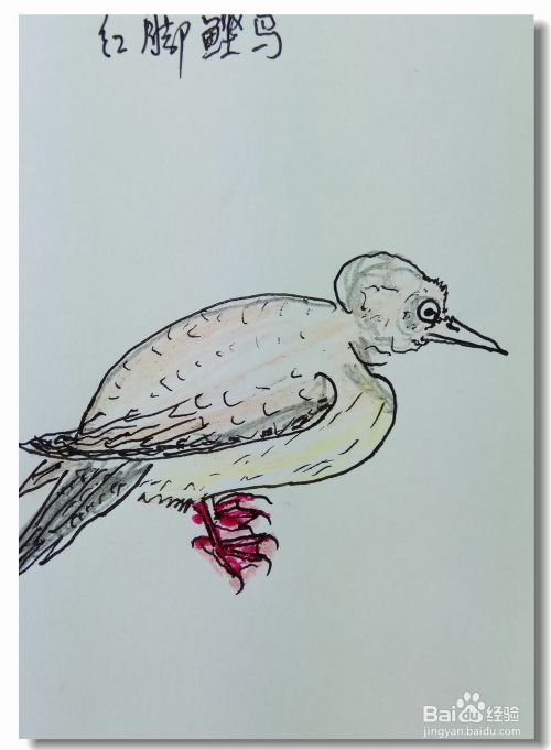 用红色的蜡笔涂出鸟的红脚掌,简笔画就画好了。