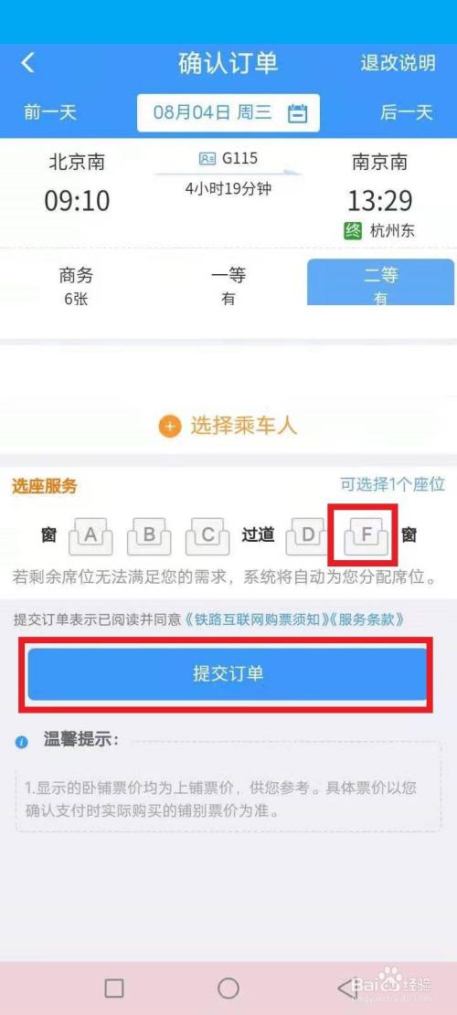选择喜欢的靠窗或靠走廊的座位,点击提交支付。