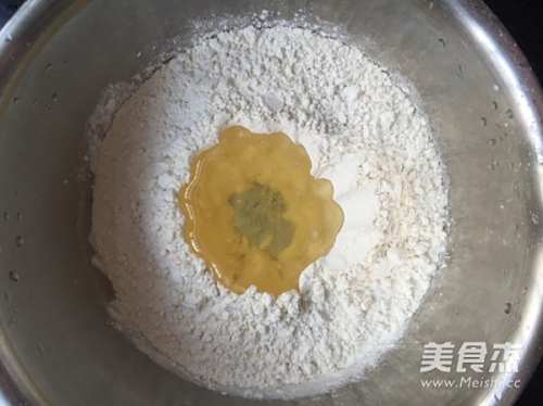 7正在等待高压锅煮豆的同时,准备面粉加入食用油