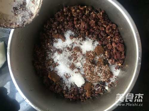 5将高压锅内煮好的红豆趁热加入红糖,我家红糖不多了就加了点白糖,两种糖混合起来口感也很好