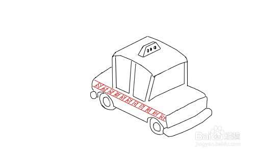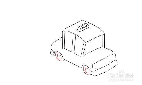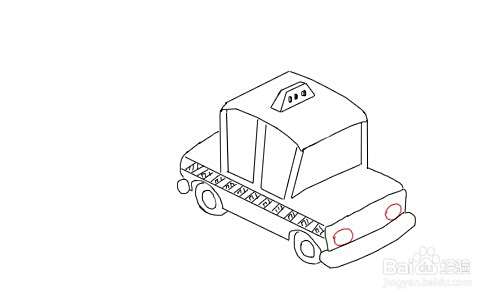 接着,勾画出车尾灯,和车轮的位置轮廓。
