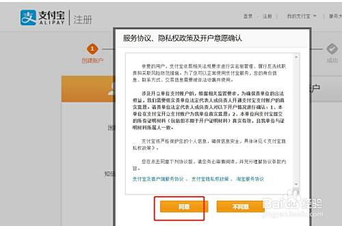 进到支付宝官方网站,点击立即注册,之后会跳出一个窗口“