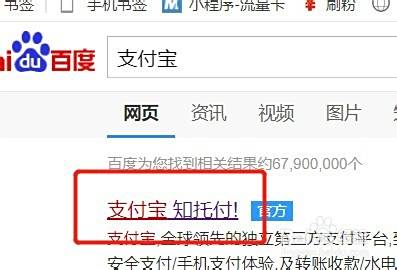 第二步在百度搜出 支付宝 进到支付宝官方网站